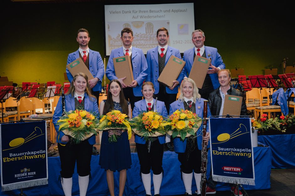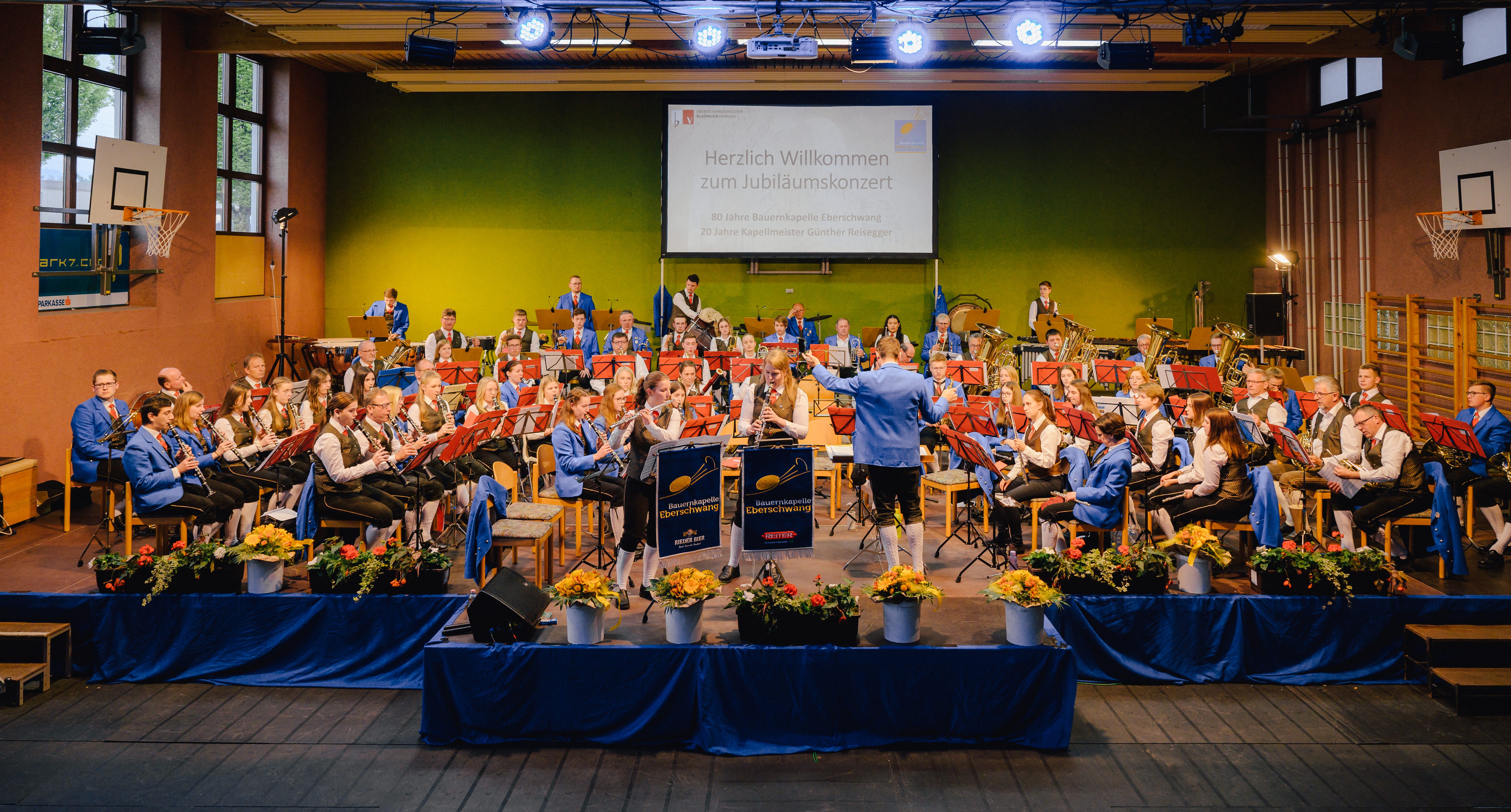 Unter dem Motto „80 Jahre Bauernkapelle Eberschwang“ und „20 Jahre Kapellmeister Günther Reisegger“ fanden am 6. und 7. Mai die Jubiläumskonzerte der Bauernkapelle im Turnsaal der Volksschule statt.
