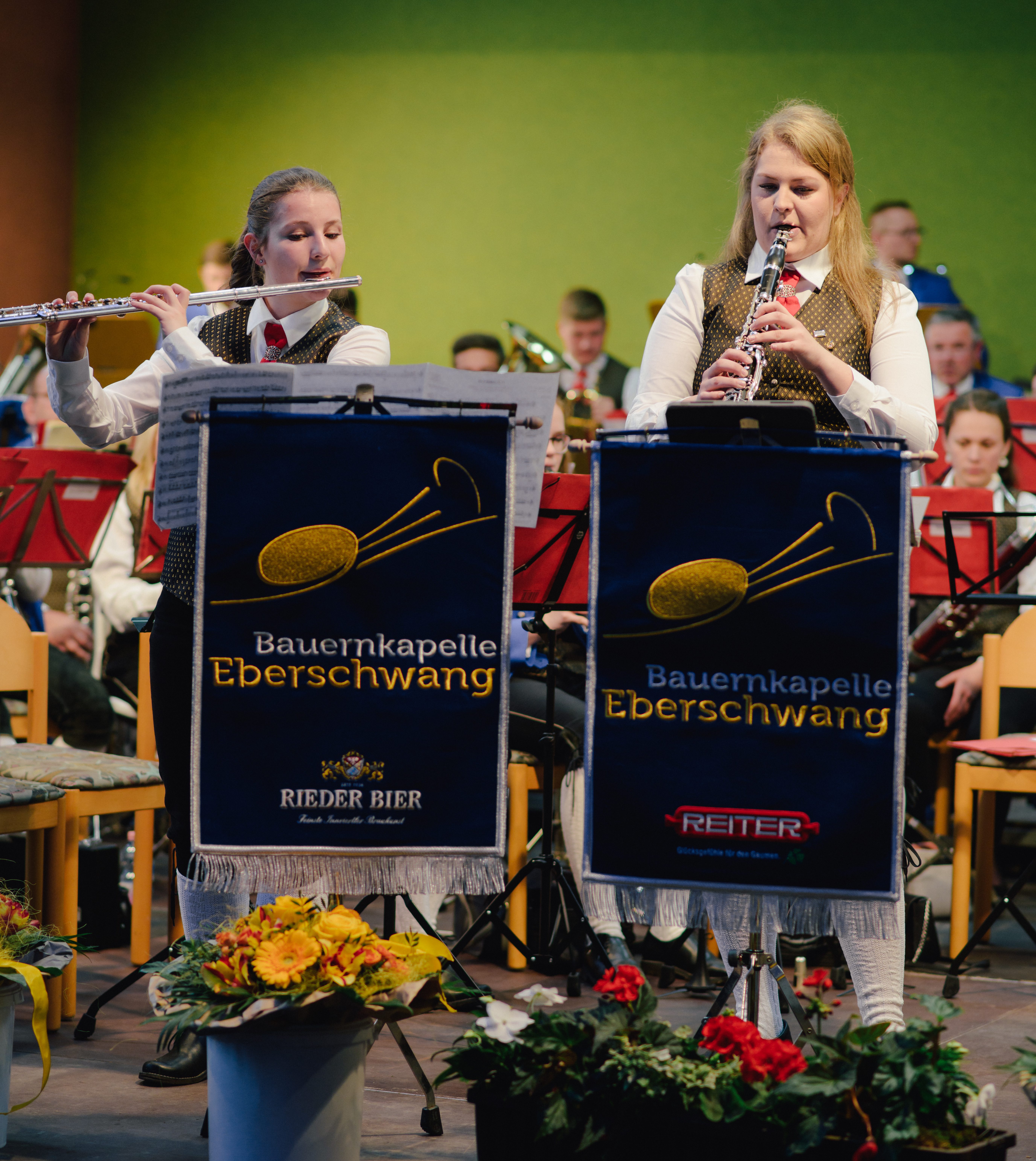 Auch unsere Solisten kamen beim Konzert nicht zu kurz. Die Geschwister Simone und Miriam Jetzinger stellten beim Solostück „Czards“ ihr Können auf der Klarinette und Querflöte unter Beweis.