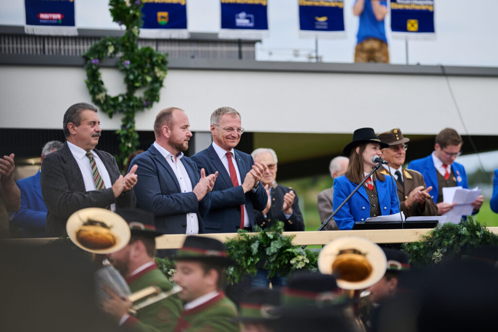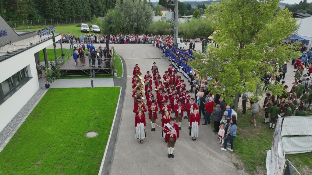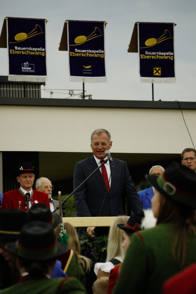 Der Samstag stand im Zeichen der offiziellen Eröffnung und zahlreicher Ehrengäste. Landeshauptmann Thomas Stelzer beehrte gemeinsam mit vielen hochrangigen Vertreterinnen und Vertretern des OÖ Blasmusikverbandes, allen voran OÖ BV Präsident Hermann Pumberger, die Feierlichkeiten. Insgesamt zwölf Gastkapellen waren an diesem Tag zu Gast, um der Bauernkapelle ihre Ehre zu erweisen. Besonders erfreulich war, dass schon am Samstag viele Eberschwangerinnen und Eberschwanger die Gelegenheit nutzten, das neue Probeheim zu besichtigen und den Empfang der Gastkapellen mitzuerleben. Der Abend ging schließlich in eine rauschende Feier über – die HoizBlech Musi und DJ Jacky’s Powerplay heizten den Gästen im Festzelt kräftig ein.
