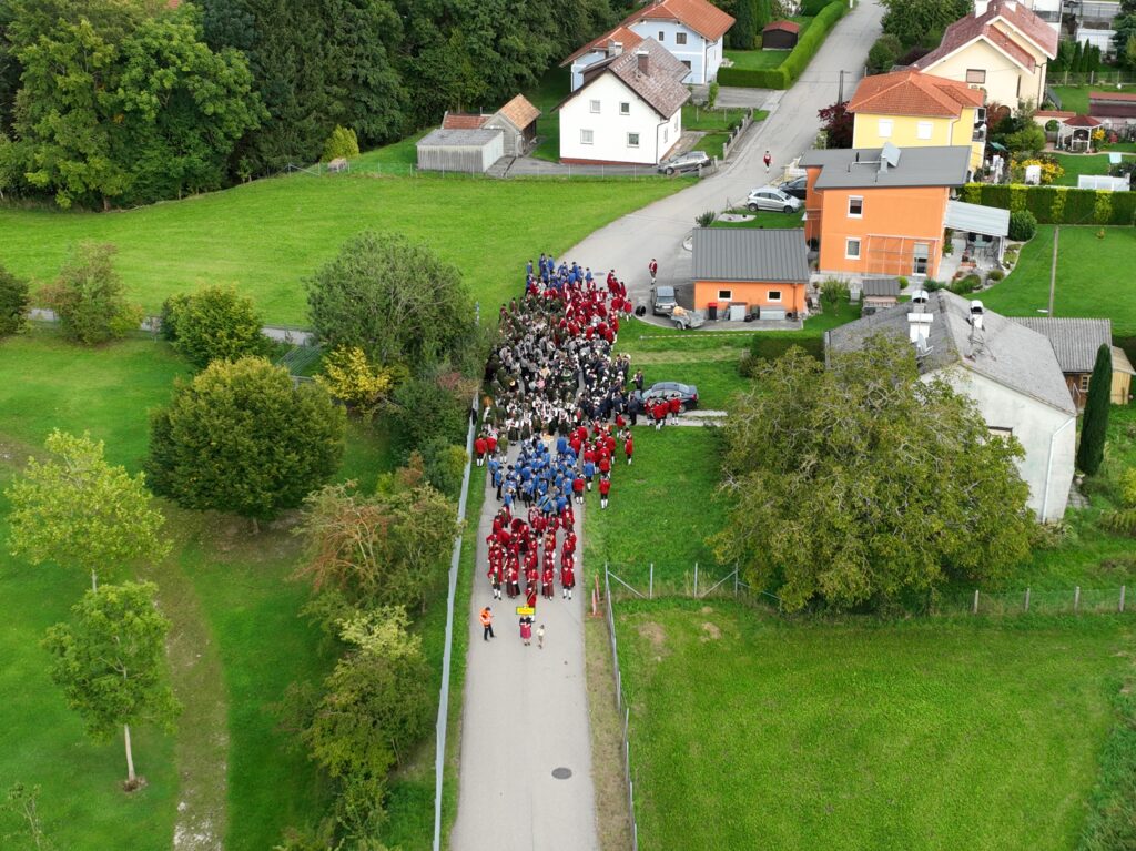 Am Sonntag eröffnete eine Feldmesse, zelebriert von Pfarrer Cyprian, den zweiten Festtag. Für die feierliche musikalische Umrahmung sorgte der Musikverein Weilbach. Anschließend erlebten die Besucherinnen und Besucher einen stimmungsvollen Frühschoppen mit der Musikkapelle St. Georgen im Attergau, die das Festzelt noch einmal bis auf den letzten Platz füllte.